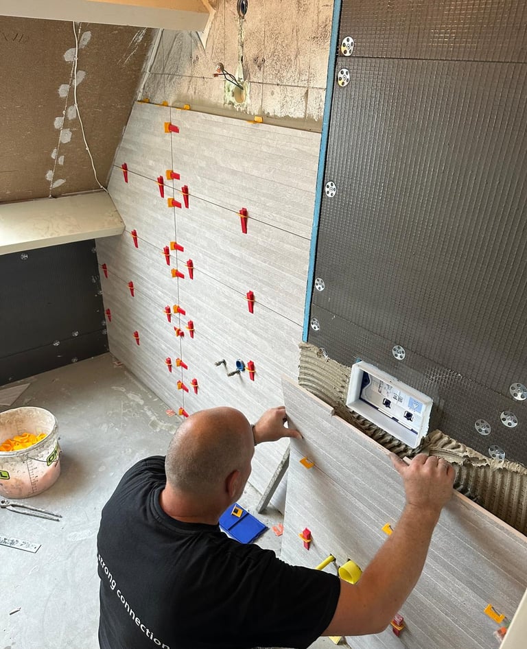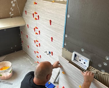 Levering en montage van tegels. Bezoek onze showroom voor het juiste advies en materiaalkeuze. Alles onder één dak voor een zorgeloze renovatie.